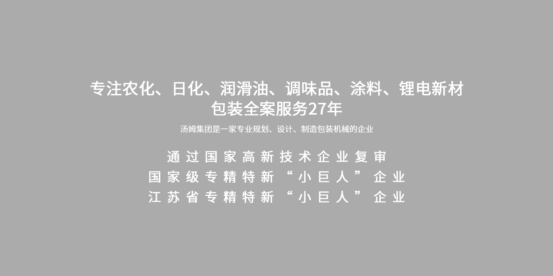 江蘇湯姆集團在液態(tài)、粉體、固體、顆粒等包裝領域的專長保證了工藝設計與整線工程的完美結合。建立了農(nóng)化、石化、調(diào)味品、日化、涂料等不同包裝領域的工藝設計體系,根據(jù)不同的包裝形式及具體的工廠布局,均可提供專為您項目而量身定制的交鑰匙解決方案 。
